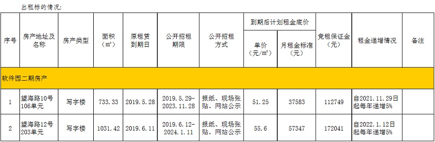 3、竟租開始時間:2019年4月30日起;