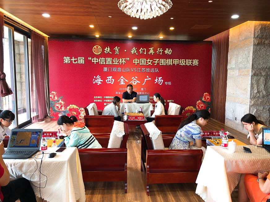 都說魚離不開水,魚兒上了陸,結果一望便知。這不,上周末,美麗鷺島就又上演了一場魚兒登陸的好戲。5月26日,第7屆中信置業(yè)杯中國女子圍棋甲級聯賽第3輪(廈門觀音山隊主場 VS 江蘇致遠隊)“海西金谷廣場”專場在位于廈門觀音山海岸的觀音山總部企業(yè)商務服務中心戰(zhàn)罷。廈門觀音山隊家門口以2-1鎖定勝局,成功挑落女子圍甲六冠王——衛(wèi)冕冠軍江蘇隊。
