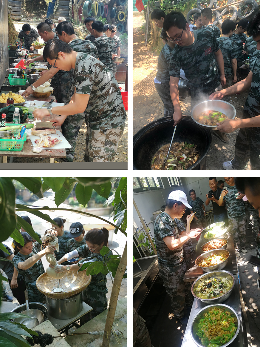 伴隨著朝陽(yáng)的沐浴,教練迅速把60名人員分成四個(gè)小隊(duì),換服裝,分組編隊(duì),每組選出隊(duì)長(zhǎng)——舉隊(duì)旗、起隊(duì)名、定隊(duì)號(hào)、畫LOGO等等,接著開始破冰環(huán)節(jié),讓大家打破隔閡,達(dá)成共識(shí),快速進(jìn)入拓展的狀態(tài)。此次拓展訓(xùn)練共安排了4項(xiàng)拓展項(xiàng)目,大家熱情高漲。鼓動(dòng)人生、接力傳球、特戰(zhàn)野炊、叢林槍戰(zhàn)都讓學(xué)員們印象深刻。鼓動(dòng)人生該項(xiàng)目強(qiáng)調(diào)整體協(xié)作與配合,要求整個(gè)團(tuán)隊(duì)每個(gè)人都要拉緊自己手中的繩子配合節(jié)奏并保持平衡,整個(gè)團(tuán)隊(duì)的每一個(gè)人都不能出現(xiàn)失誤,必須精誠(chéng)合作,個(gè)人英雄主義思想、好勝、莽撞都會(huì)讓整個(gè)團(tuán)隊(duì)功虧一簣。接力傳球強(qiáng)調(diào)的是對(duì)大家默契程度的考驗(yàn),充分體現(xiàn)了團(tuán)隊(duì)的協(xié)作力。特戰(zhàn)野炊項(xiàng)目考驗(yàn)團(tuán)隊(duì)的凝聚力和時(shí)間的觀念性,生火、洗菜、切菜、洗碗、煮飯,隊(duì)員里的每個(gè)人都要清楚自身分工,干好自己手中的活,確保在規(guī)定時(shí)間內(nèi)完成該項(xiàng)目。叢林槍戰(zhàn)強(qiáng)調(diào)充分挖掘自身潛能,因地制宜,提前做好部署。“這些對(duì)參加工作的我們都是很好的學(xué)習(xí)和借鑒。”
