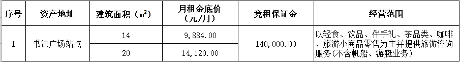 備注:意向承租人對上述情況應(yīng)有充分了解。詳細(xì)招租規(guī)則、合同、承諾函、報價單等招租文件于報名參加時領(lǐng)取。