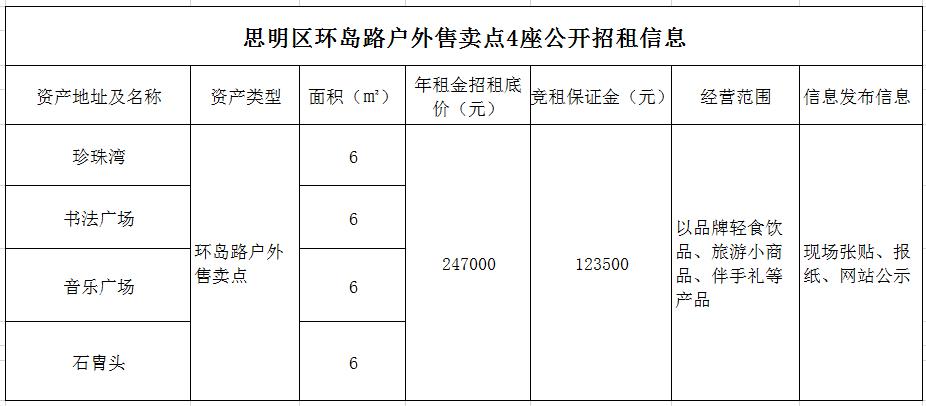 思明區(qū)環(huán)島路戶外售賣點4座公開招租公告