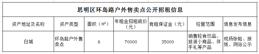 思明區(qū)環(huán)島路戶外售賣點(diǎn)公開招租公告