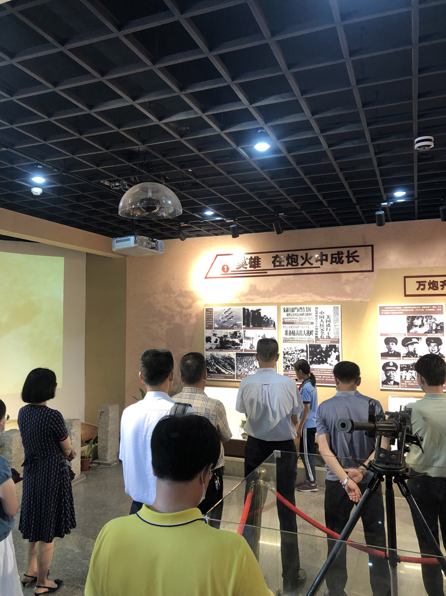 參觀過程中,通過何厝小學(xué)的師生的導(dǎo)學(xué)和現(xiàn)場環(huán)境氛圍的渲染,黨員同志清晰的了解到在50年代,盤踞在臺灣金門島的國民黨軍隊經(jīng)常對大陸進行軍事挑釁,福建沿海許多和平的村莊被炸毀,許多村民被炸死。生活在福建前線的八個小學(xué)生在學(xué)校遷到后方之際主動留了下來,冒著槍林彈雨,成了“縫縫連連、洗洗涮涮、站崗放哨、擦擦炮彈、修筑工事、挑水送飯、送茶點煙、安電話線”的“什錦戰(zhàn)士”,有力地支援了前線的抗敵斗爭。因此,解放軍送給了他們一個光榮稱號——英雄小八路。