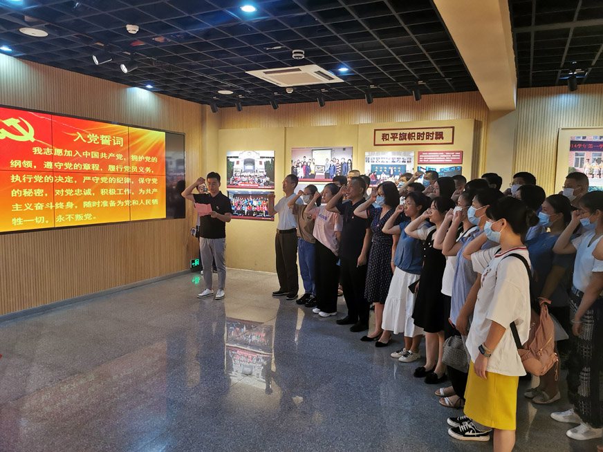 最后,集體黨員面對莊嚴肅穆的黨旗,握緊拳頭舉過頭頂莊嚴宣誓,讓我們又找到了一種蓄勢待發(fā)、激情投入的力量,真誠做人、立足崗位、履行職責、廉潔自律。