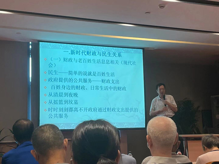 宣誓結(jié)束,來自廈門大學(xué)經(jīng)濟(jì)學(xué)院財政系教授劉曄為黨員們講授黨課《現(xiàn)代財政制度與新時代民生福祉》。劉教授的報告以習(xí)近平總書記對現(xiàn)代財政制度、民生福祉的重要論述為主要依據(jù),結(jié)合黨的十九大報告基本精神,通過“財政與民生”這一視角,說明財政是民生福祉的保障和主要依托,是國家治理的基礎(chǔ)和重要支柱。以民生福祉為中心,補(bǔ)足“民生短板”,加快建立現(xiàn)代財政制度,是我黨百年財政思想與實踐的重要課題。黨員干部只有始終將為人民群眾謀福利作為奮斗目標(biāo),把改善民生福祉落到實處,讓群眾共享新時代的發(fā)展成果,提高人民幸福感、獲得感,國家就能日益繁榮昌盛。劉教授的報告使大家對我們黨“發(fā)展為了人民、發(fā)展依靠人民,發(fā)展成果由人民共享”即“以人民為中心”的發(fā)展思想有了更加深刻的理解和認(rèn)識。