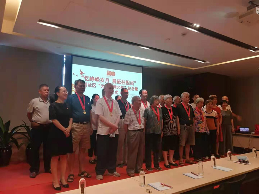 黨課結(jié)束,仙岳社區(qū)各黨支部書記和開元國投有關(guān)領(lǐng)導(dǎo)上臺,為仙岳社區(qū)28名黨齡達(dá)到50年以上的老黨員頒發(fā)“光榮在黨50年”紀(jì)念章。在“七一”建黨百年紀(jì)念日即將到來之際,黨中央決定向黨齡達(dá)到50年以上的老黨員頒發(fā)“光榮在黨50年”紀(jì)念章,表達(dá)了對老黨員的敬意,進(jìn)一步增強(qiáng)了老黨員的榮譽(yù)感、歸屬感、使命感。老黨員們心情激動,都表示要繼續(xù)保持共產(chǎn)黨員本色,發(fā)揚(yáng)全心全意為人民服務(wù)的精神,為廈門建設(shè)發(fā)揮余熱。在場的青年黨員也紛紛表示,要堅定永遠(yuǎn)跟黨走的信念,傳承好老一輩的優(yōu)良傳統(tǒng)和作風(fēng),為黨旗增輝,不負(fù)青春,不負(fù)理想。