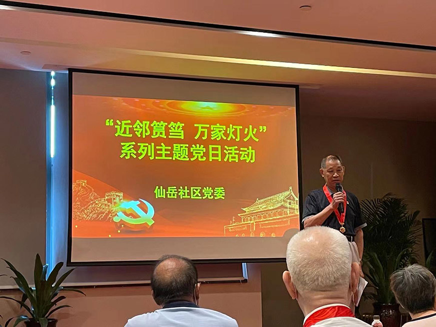 最后,仙岳社區(qū)老黨員朱喜田分享了他1976年作為灤平鐵道兵11師第五十三團(tuán)副營長,參與唐山大地震搶修鐵路舟橋的經(jīng)歷。雖然長期的鐵路工作,讓朱喜田老人落下不少職業(yè)病,但他依然積極樂觀,始終把“熱血鑄就鋼鐵大動脈”作為人生的座右銘。脫下軍裝,轉(zhuǎn)換陣地,他積極參與社區(qū)事務(wù)、定期為黨員上黨課,用實際行動繼續(xù)弘揚(yáng)抗震精神,發(fā)揮先鋒模范作用,讓黨旗在基層社區(qū)高高飄揚(yáng)。