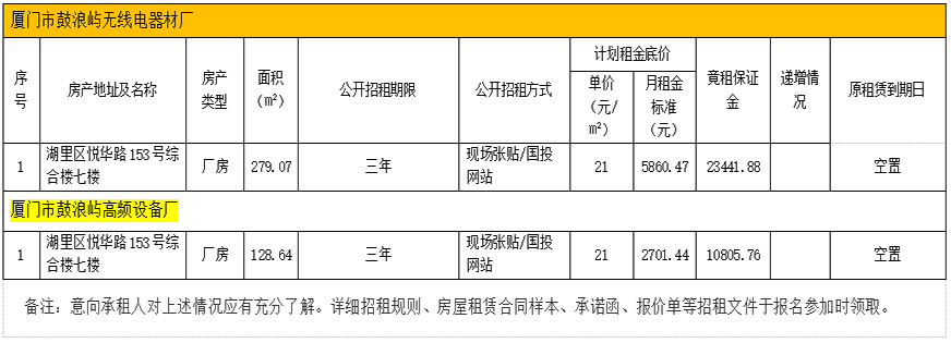 思明區(qū)屬托管企業(yè)擬出租房產(chǎn)招租情況