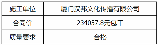 根據(jù)招投標(biāo)管理辦法、思明控股辦[2021]14號文《采購招標(biāo)管理辦法》的相關(guān)規(guī)定,我司負(fù)責(zé)投資建設(shè)的開元寶邸四期(F-05地塊)小區(qū)導(dǎo)向牌制作安裝工程直接發(fā)包廈門漢邦文化傳播有限公司實施,現(xiàn)通過思明控股網(wǎng)站于2021年12月9日至2021年12月13日進(jìn)行成交結(jié)果公示,內(nèi)容如下: