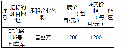 故宮路106號(hào)F4車(chē)庫(kù)房產(chǎn)招租成交公告