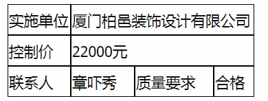根據(jù)相關(guān)規(guī)定,我司負責裝修的園區(qū)服務(wù)大廳、觀音山驛站裝修設(shè)計項目直接發(fā)包廈門柏邑裝飾設(shè)計有限公司實施,現(xiàn)通過思明控股網(wǎng)站于2021年12月22日至2021年12月26日對外發(fā)布結(jié)果公告,內(nèi)容如下: