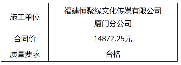 根據(jù)招投標(biāo)管理辦法、思明控股辦[2021]14號(hào)文《采購(gòu)招標(biāo)管理辦法》的相關(guān)規(guī)定,我司負(fù)責(zé)龍山文創(chuàng)園標(biāo)識(shí)牌制作及工業(yè)設(shè)計(jì)中心大門左側(cè)空調(diào)外機(jī)圍擋工程直接發(fā)包福建恒聚緣文化傳媒有限公司廈門分公司實(shí)施,現(xiàn)通過思明控股網(wǎng)站于2021年12月27日至2021年12月30日進(jìn)行成交結(jié)果公示,內(nèi)容如下: