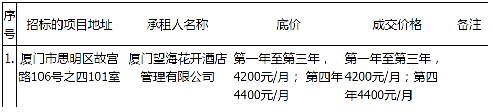 思明區(qū)故宮路106號(hào)之四101室招租成交公告