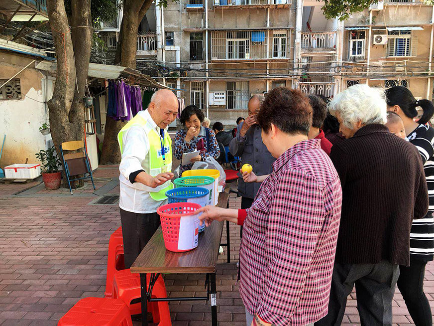 “阿姨,您好,我們是志愿者,這是垃圾分類宣傳冊(cè),里面有詳細(xì)講解了可回收物、廚余垃圾、有害垃圾及其他垃圾的分類,特別要注意干濕分離,有害物品單獨(dú)放,促進(jìn)資源的循環(huán)利用,在小區(qū)的入口還有垃圾分類現(xiàn)場(chǎng)演示小游戲,如果有時(shí)間您可以下樓去參與……”簡(jiǎn)單的話語(yǔ),傳遞了我們的用心和初心。