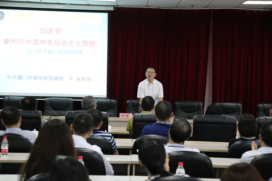 為進(jìn)一步把學(xué)習(xí)宣傳貫徹習(xí)近平新時代中國特色社會主義思想引向深入,在思明控股集團(tuán)持續(xù)興起“大學(xué)習(xí)”“大宣講”熱潮,11月9日下午,思明控股集團(tuán)黨委邀請廈門市委黨校黨建教研部副主任、教授牛君作“習(xí)近平新時代中國特色社會主義思想——以《三十講》為分析視角”專題黨課。思明控股集團(tuán)領(lǐng)導(dǎo)班子、所屬一級子公司中層副職(含所屬二級子公司副職)以上人員及全體在廈黨員共170余人參加了學(xué)習(xí)。