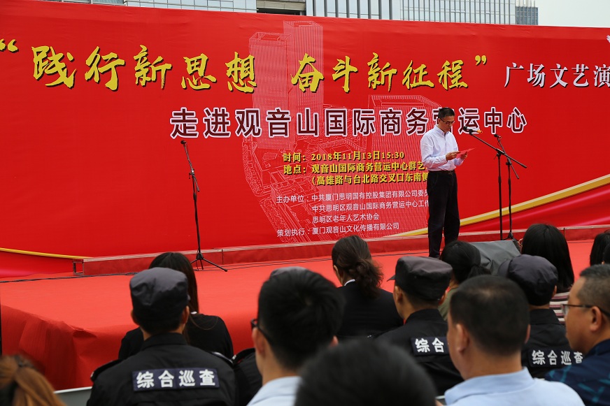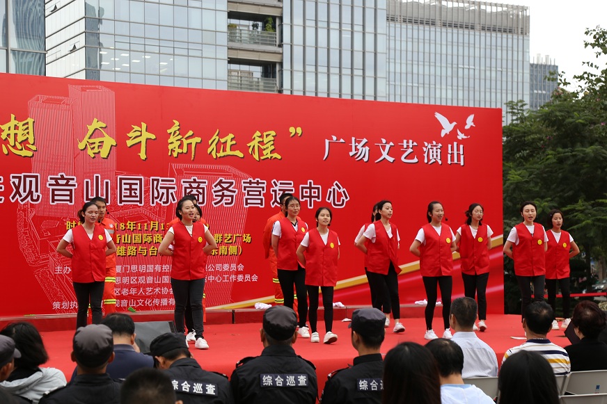 為深入學(xué)習(xí)貫徹習(xí)近平新時代中國特色社會主義思想,激勵園區(qū)企業(yè)以更加飽滿的精神風(fēng)貌,慶祝改革開放40周年,接續(xù)奮斗,11月13日下午,由思明控股集團黨委聯(lián)合觀音山黨工委、思明區(qū)老年人藝術(shù)協(xié)會共同舉辦“踐行新思想,奮斗新征程” ——學(xué)習(xí)習(xí)近平新時代中國特色社會主義思想廣場文藝演出。
