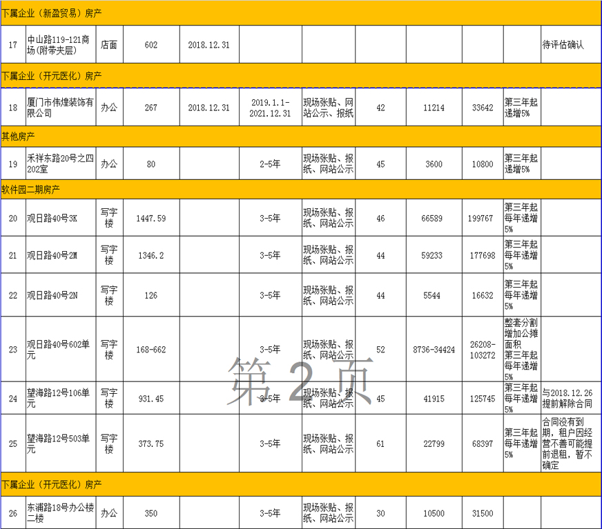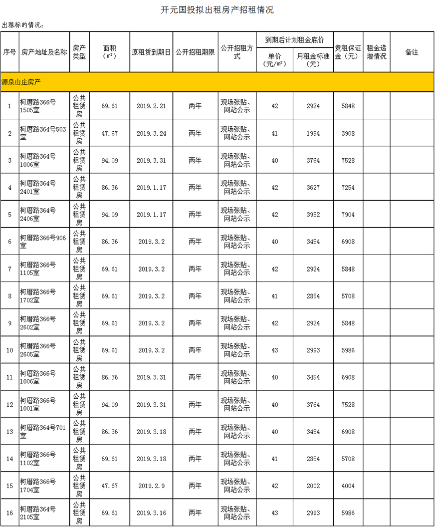 開(kāi)元國(guó)投2019年1-3月到期、空置房產(chǎn)公開(kāi)招租