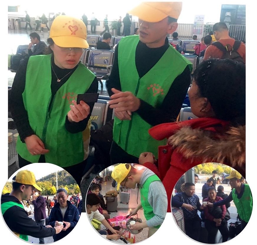 “請問我這張票要去哪里候車?”“請問一下梧村車站怎么走?”支部同志身著志愿者服裝一到場,就有許多受困旅客上前咨詢。每年春運期間國內各個火車站都會加派人手,做好各項準備工作。但即便如此,依然會有許多旅客遇到困難,并難以在密集的人群中尋求幫助,在這個時候,分布在火車站各個地方的志愿者就是受困旅客最好的幫手。無論是各個車次的具體候車點、自助取票機的位置,還是周邊的餐飲、百貨、汽車站路線,甚至旅客需要開水時,志愿者都有隨身攜帶熱水壺和紙杯為旅客提供方便。支部同志們無論走到哪,身邊都會圍繞許多尋求幫助的受困旅客,支部每一位同志都以最飽滿的熱情悉心答疑,以實際行動為人民服務。