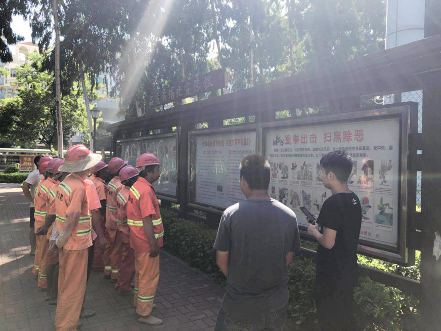 根據(jù)公司掃黑除惡專題辦公會(huì)議工作部署,為繼續(xù)加強(qiáng)“掃黑除惡”專題宣傳教育,公司及時(shí)在公告欄更新相關(guān)政策規(guī)定,做到宣傳海報(bào)、橫幅上墻,同時(shí)要求部門領(lǐng)導(dǎo)、巡查人員前往一線進(jìn)行宣講,在公司營造人人了解、人人關(guān)注的濃厚氛圍。